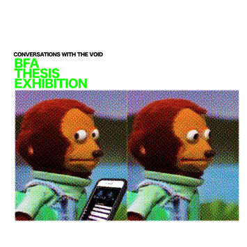 The COVID-19 pandemic has meant sending our words and our work out into virtual spaces—we can only hope that those ideas and wishes land somewhere, with someone, in the void. This situation has both conceptual and practical consequences for a BFA Thesis Exhibition in 2020. Students cannot gather in-person to celebrate their accomplishment; some will feel comfortable visiting the exhibition, while others will not. Instead of viewing these circumstances as a limitation, this BFA Thesis Exhibition has embraced the uncanniness of this void, as well as technology as both the reason for and solution to feeling betwixt and between.