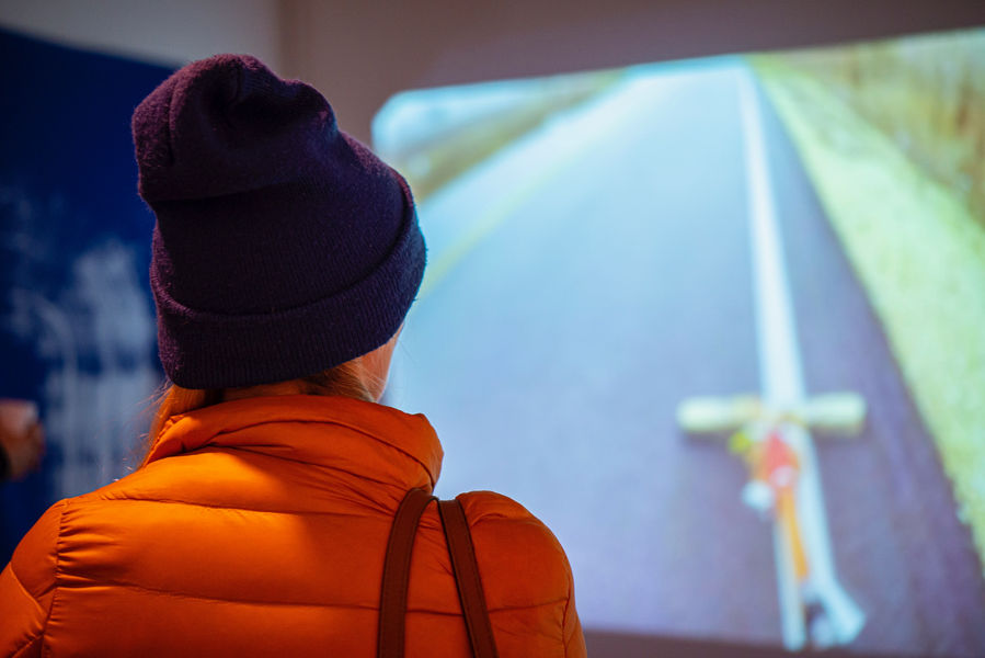 Grounded ( sweeping 100 miles) is a dual projection installment and on-going film experiment documenting the process of pushing a broom 100 miles from one city to another via a first-person point of view. Grounded was a continued exploration to question the mechanics and the status of the production from a previous piece titled, Laborers. A cinematic short film composed of two symmetrical screens. Myself, performing an activity through opposing principles, “nothing leads to something.” Which carry forward the earliest outlook of knowledge, continuous connectivity, and understanding of life between diverse groups of people.